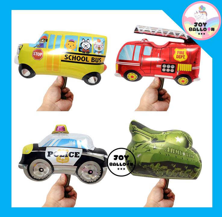 ลูกโป่งรถยนต์ รถไฟ รถตำรวจ รถขนทราย รถถัง เรือเดินสมุทร เรือดำน้ำ เครื่องบิน