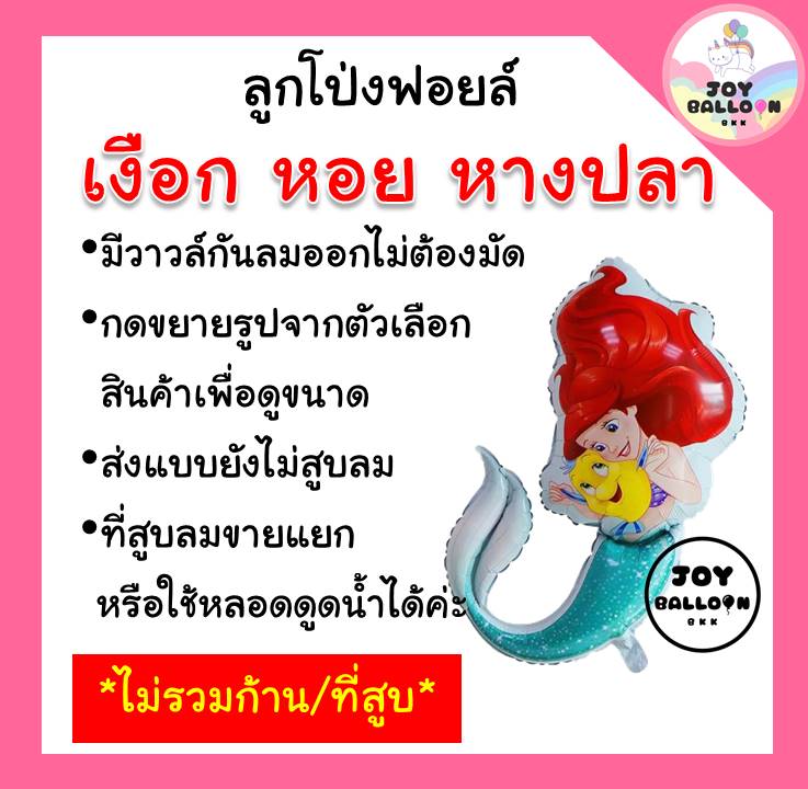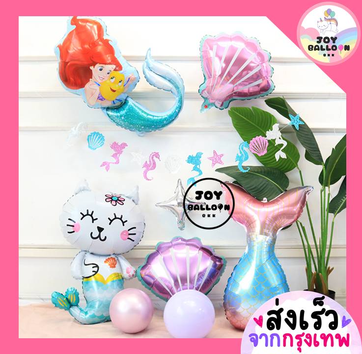 ลูกโป่งฟอยล์ นางเงือก แอเรียล หางเงือก หอยเชลล์