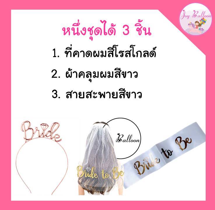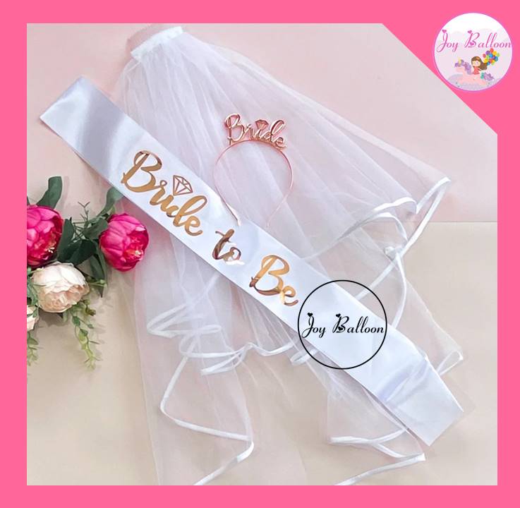สายสะพายว่าที่เจ้าสาว พร้อมมงกุฎและผ้าคลุมผม Bride
