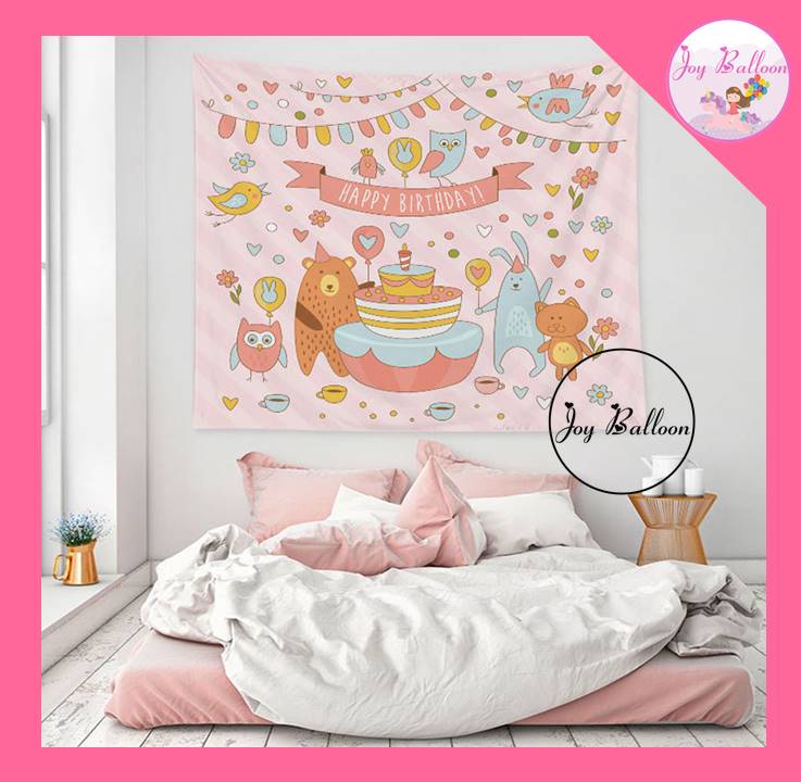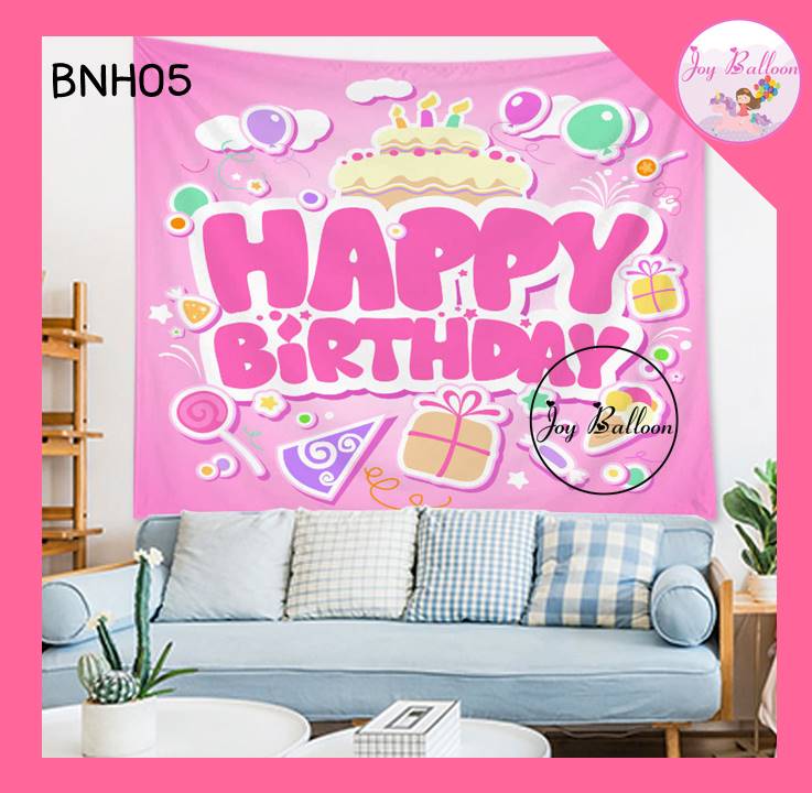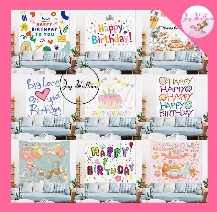 ฉากหลังวันเกิด Happy Birthday ป้ายผ้า Banner ฉากผ้า