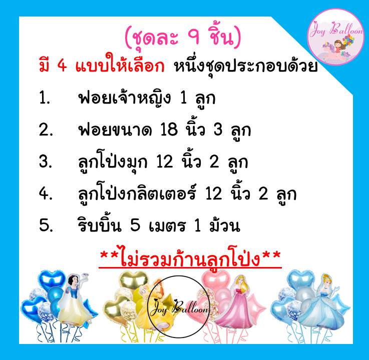 ลูกโป่งฟอยล์ลายเจ้าหญิงออโรร่า เจ้าหญิงเบลล์ เจ้าหญิงซินเดอเรลล่า เจ้าหญิงสโนว์ไวท์