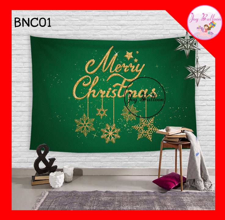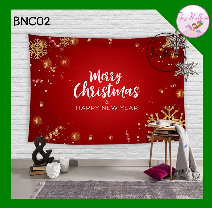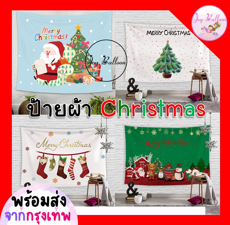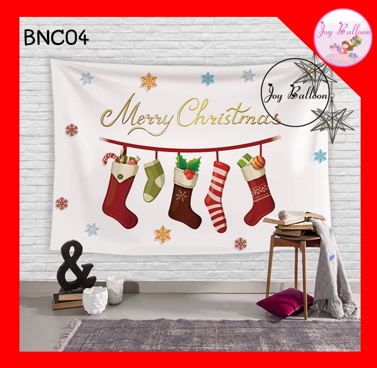 ฉากหลัง ป้ายผ้า Banner ฉากผ้า สำหรับตกแต่งคริสมาส Merry Christmas
