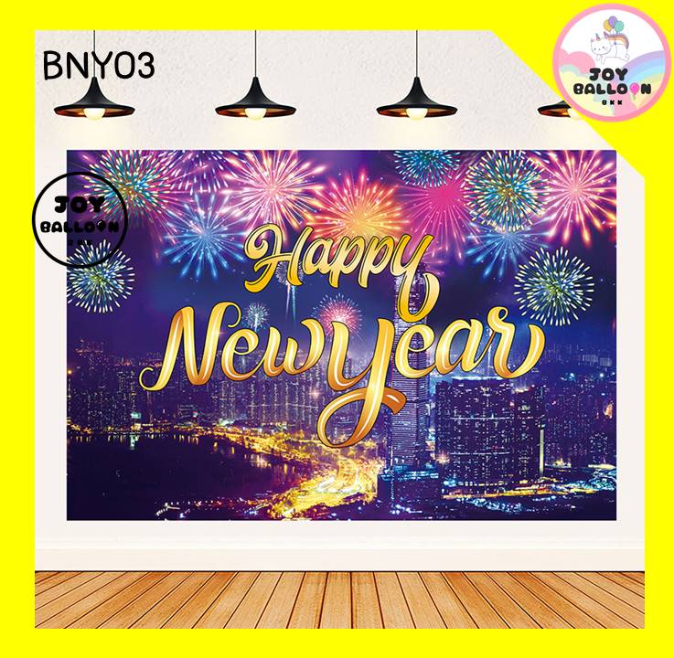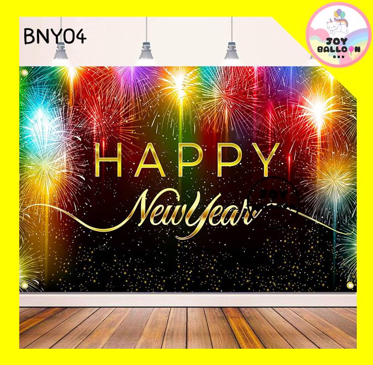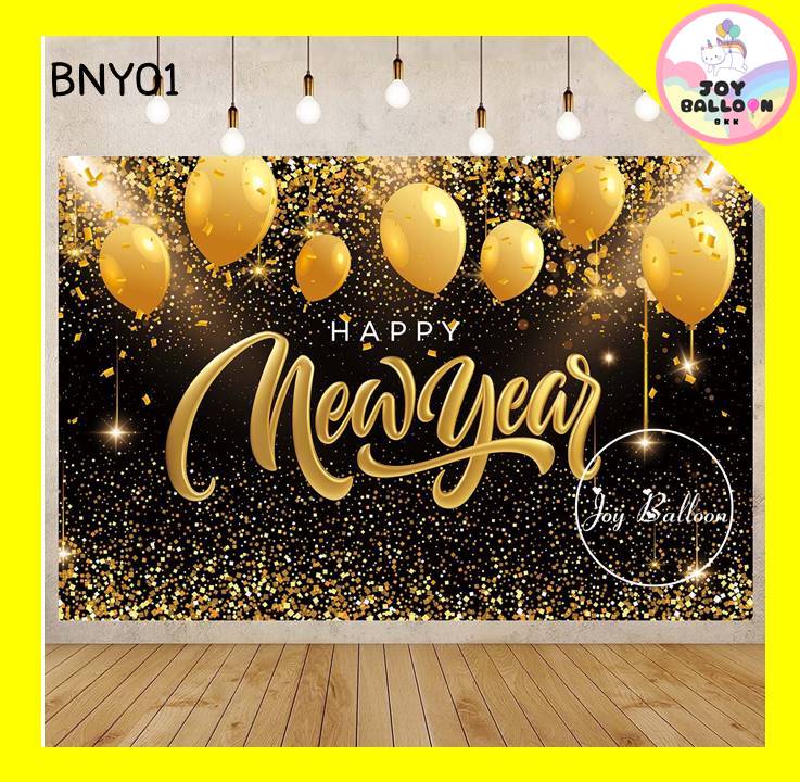 ฉากหลัง ป้ายผ้า Banner ฉากผ้า สำหรับตกแต่งปีใหม่ Happy New Year
