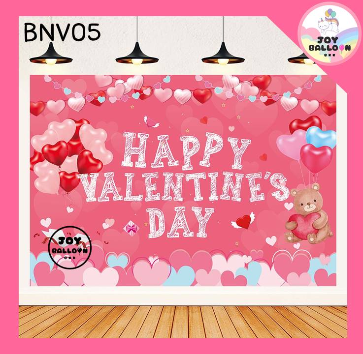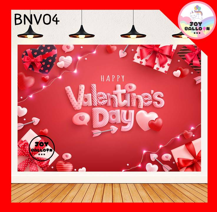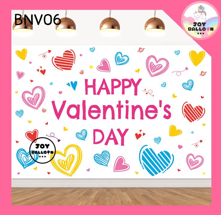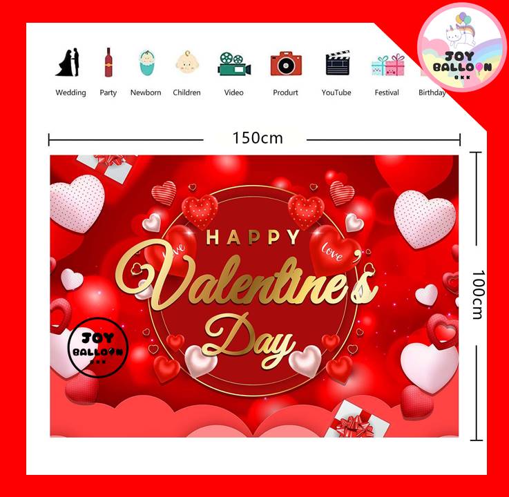 ฉากหลัง ป้ายผ้า Banner ฉากผ้า สำหรับตกแต่งวาเลนไทน์ Happy Valentine's บอกรัก