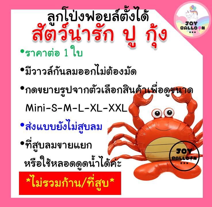 มีลูกโป่งลายกุ้ง ปู สิงโต วัว แพนด้า หมี ไดโนเสาร์ โลมา เต่า กระต่าย ยุนิคอร์น โคอาล่า