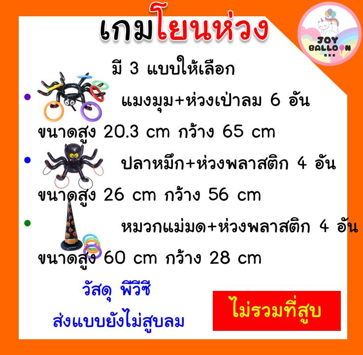 -เกมส์โยนห่วงสำหรับงานปาร์ตี้ฮาโลวัน วันเกิด หรือเทศกาลต่างๆ -มี 3 แบบให้เลือก -ขนาดสินค้าดูได้จากในรูป -ส่งแบบยังไม่สูบ -ใช้เป็นอุปกรณ์ปาร์ตี้งานฮาโลวีนคริสมาส ปีใหม่ วันเกิด งานปารตี้ต่างๆ ----------------------------------------------