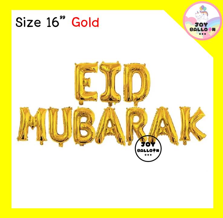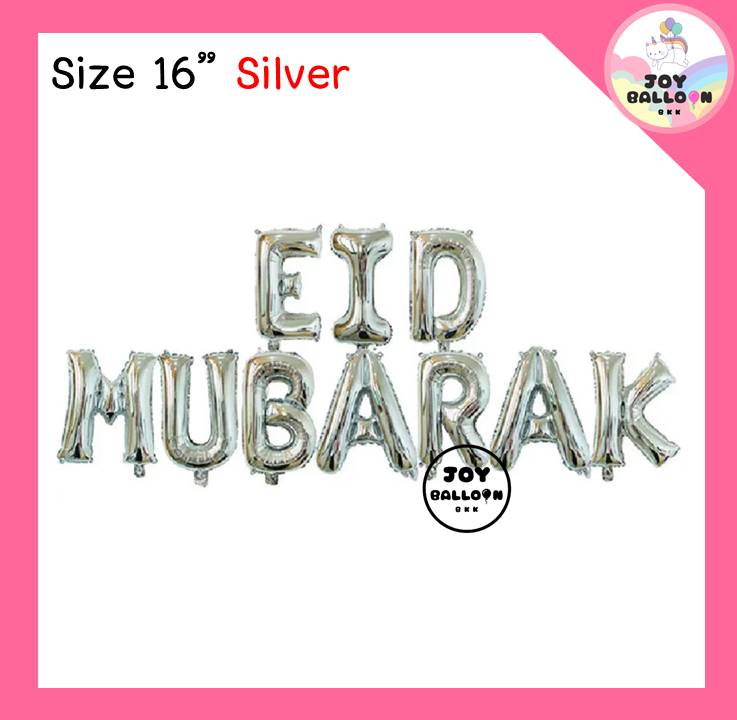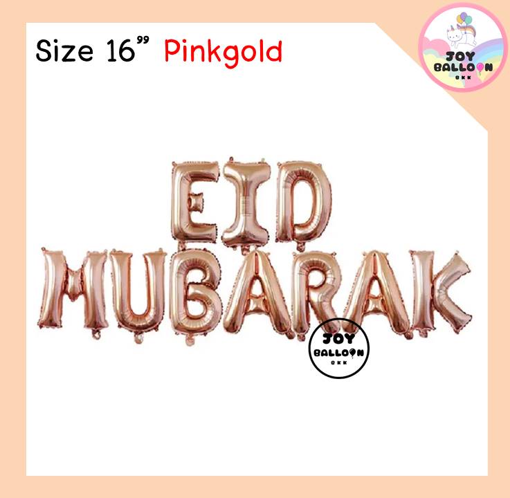 ลูกโป่งฟอยล์ตัวอักษร Eid Mubarak ขนาด 16 นิ้ว