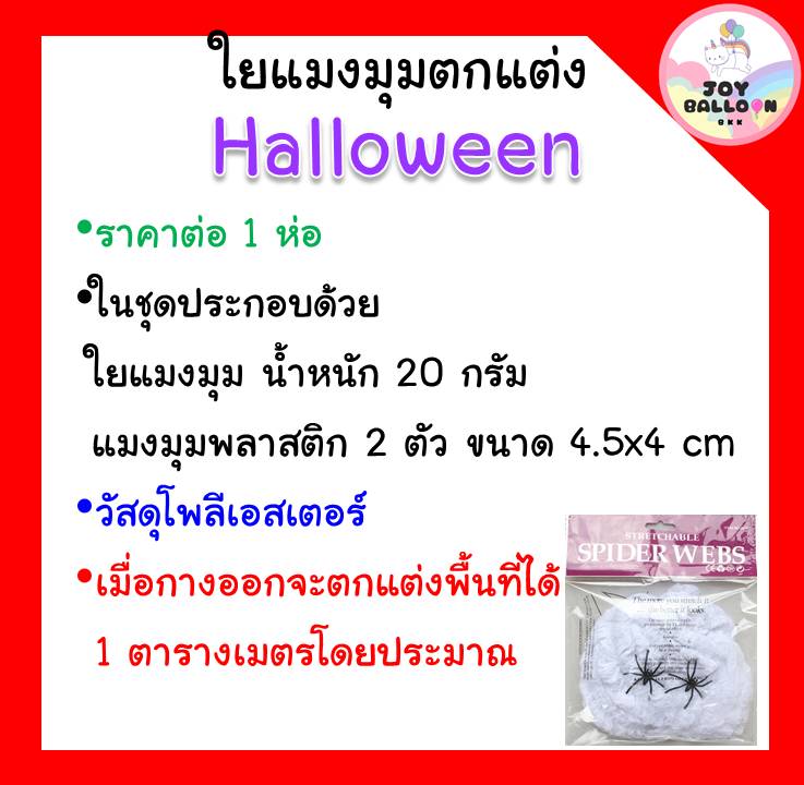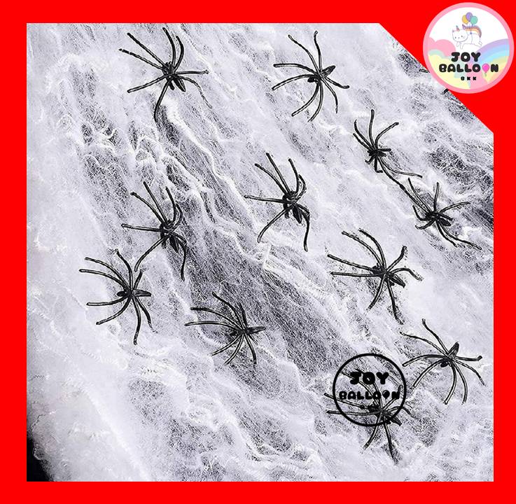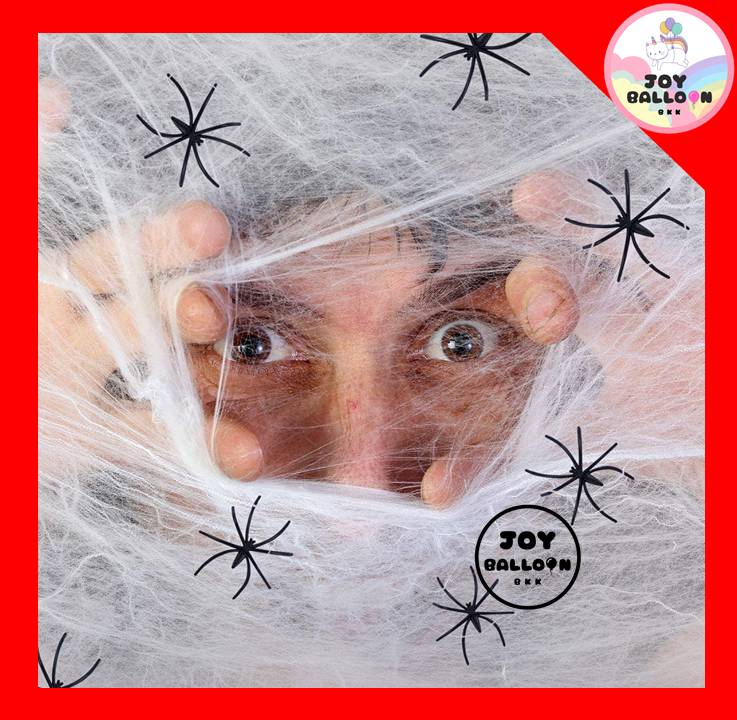-ใยแมงมุมปลอม สำหรับตกแต่งฮาโลวีน ใยแมงมุมพลาสติกติก หยากไย่ -อุปกรณ์ตกแต่งฮาโลวีน อุปกรณ์ตกแต่งสถานที่ -วัสดุโพลีเอสเตอร์ -ราคาต่อ 1 ห่อ -ในห่อประกอบด้วยใยแมงมุม 20 กรัม แมงมุมดำ 2 ตัว ----------------------------------------------